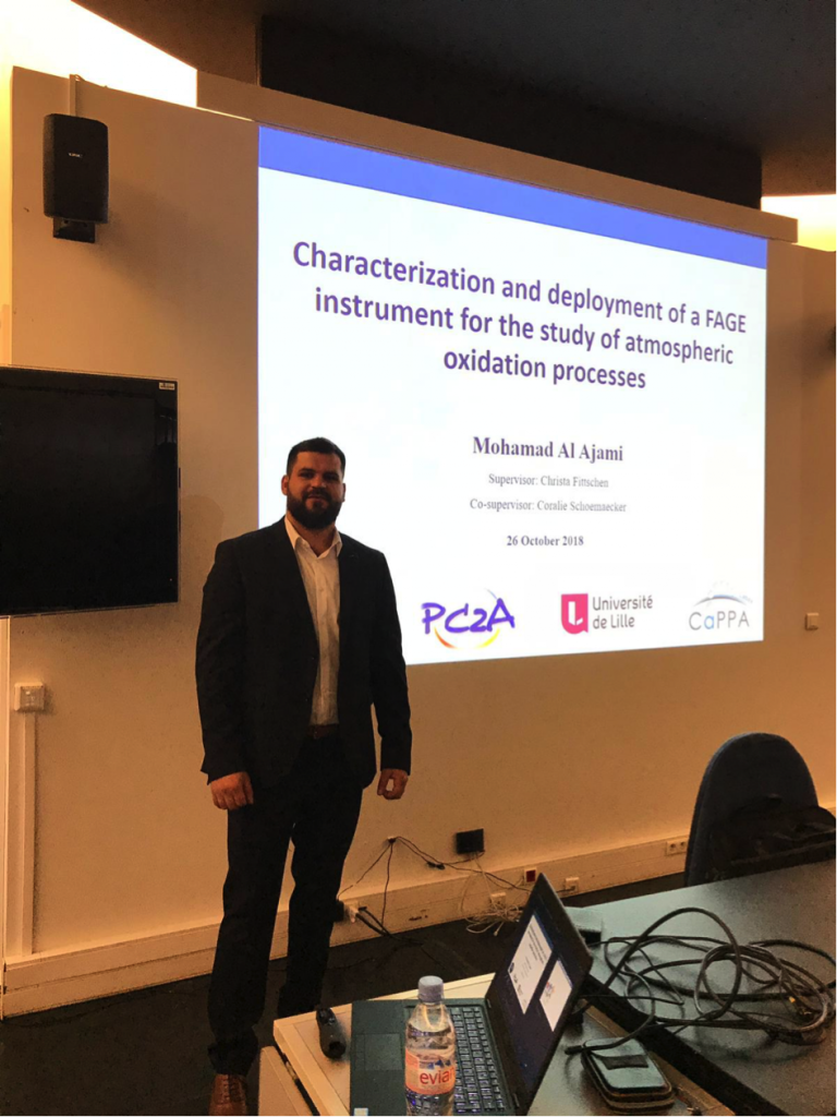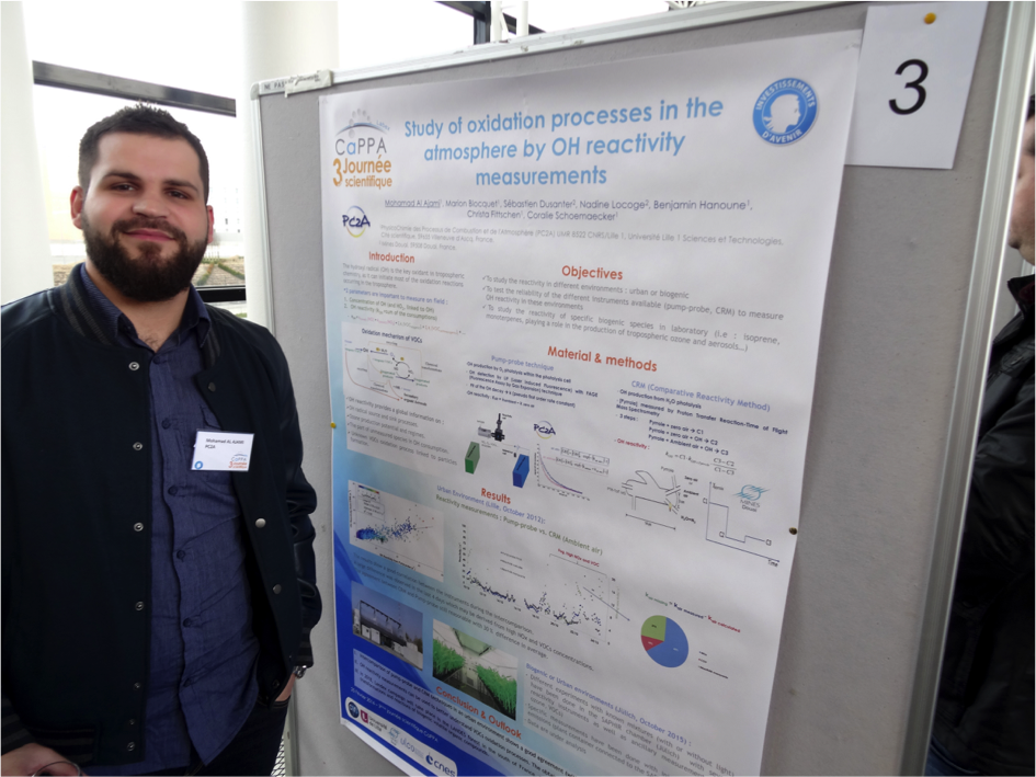 Mohamad Al Ajami, Marion Blocquet, Sébastien Dusanter, Nadine Locoge, Benjamin Hanoune, Christa Fittschen, Coralie Schoemaecker « Study of oxidation processes in the atmosphere by OH reactivity measurements », poster at Cappa 3 Journee scientifique, Villeneuve d’Ascq, France.